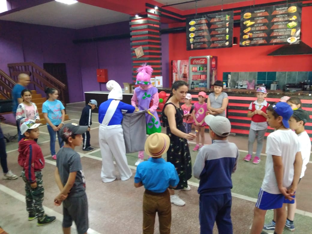 После организовали поездку в село Верхнеяркеево, в кинотеатр имени М.Гареева. Там для детей сотрудники кинотеатра провели различные конкурсные игры. Ребята превращались в веселых героев, танцевали задорные танцы, рисовали мелками на асфальте. Они получили море положительных эмоций, сладкие призы за активное участие в конкурсах. В заключение посмотрели мультфильм и довольные, поехали домой.